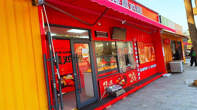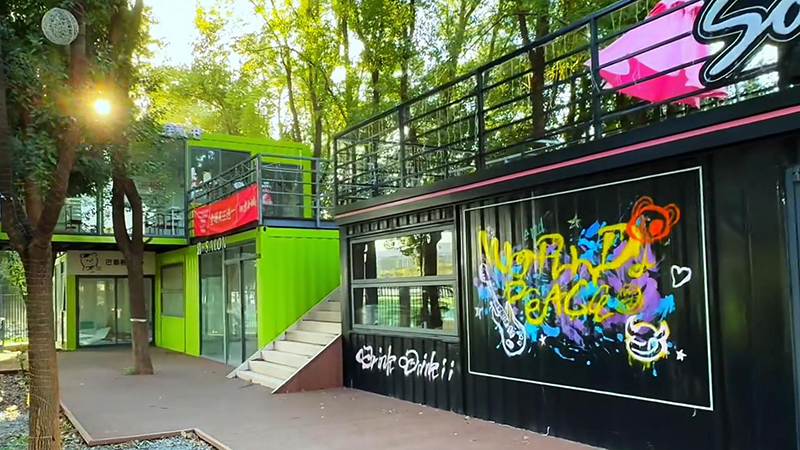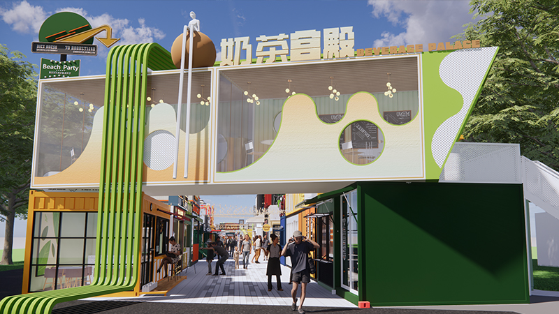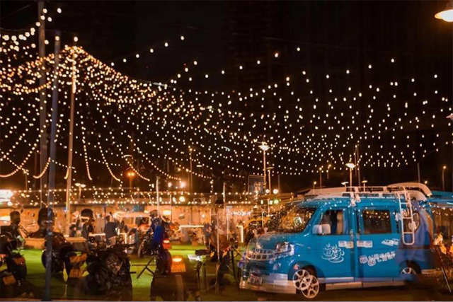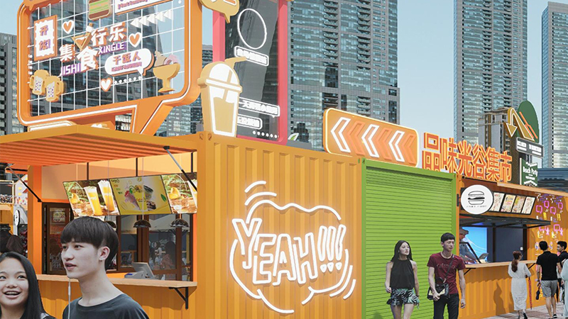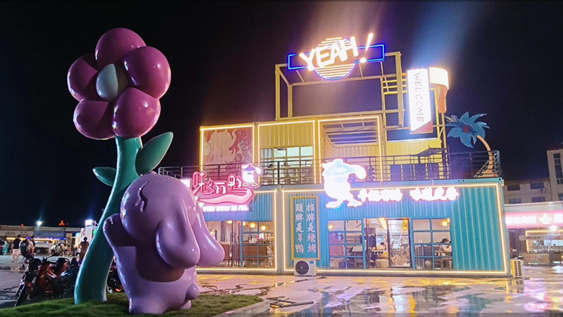 由咱們博客斯定制的赤壁華潤(rùn)啤酒廣場(chǎng)集裝箱式夜市“五一”火爆出圈